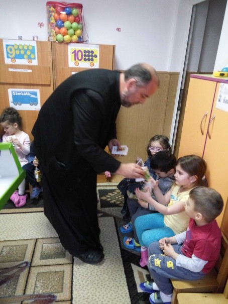 Cu binecuvântarea Înaltpreasfințitului Părinte Varsanufie, Arhiepiscopul Râmnicului, prin Sectorul Învățământ și Activități cu tineretul, în Săptămâna Patimilor, Părintele Neagoe Gabriel Vasile de la Parohia Sfântul Gheorghe-Nord a desfășurat o serie de activități catehetice la Grădinița PP Dumbrava minunată.