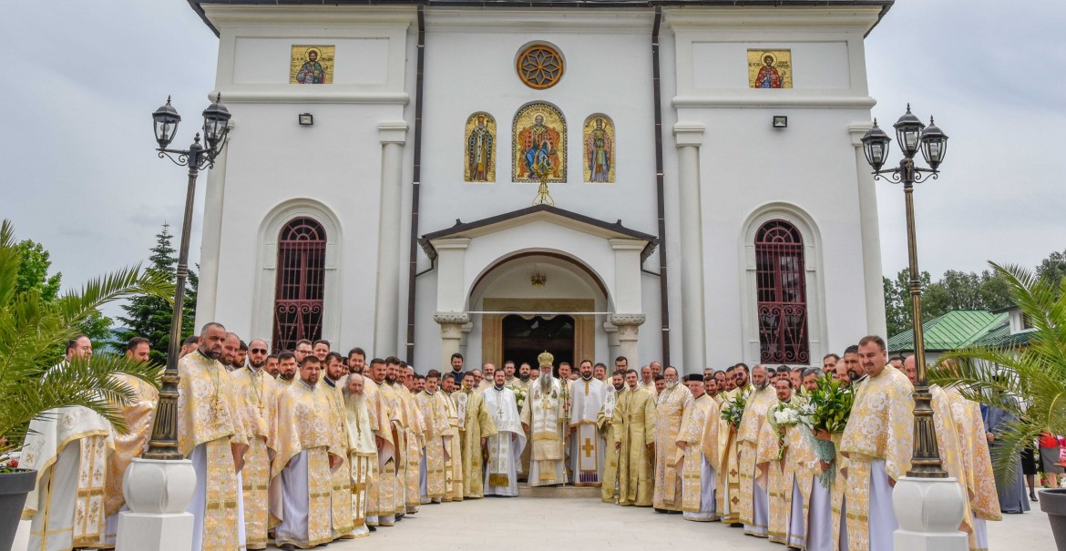 Alături de Înaltpreasfinția Sa au fost stareții mănăstirilor și preoți din cele patru protoierii ale Eparhiei, care și-au înveșmântat sufletele în această zi cu recunoștință, privind nu doar la înșiruirea anilor, ei înșiși un timp jertfit în slujba Bisericii, ci la cununa înfăptuirilor, ctitoricești și misionare.