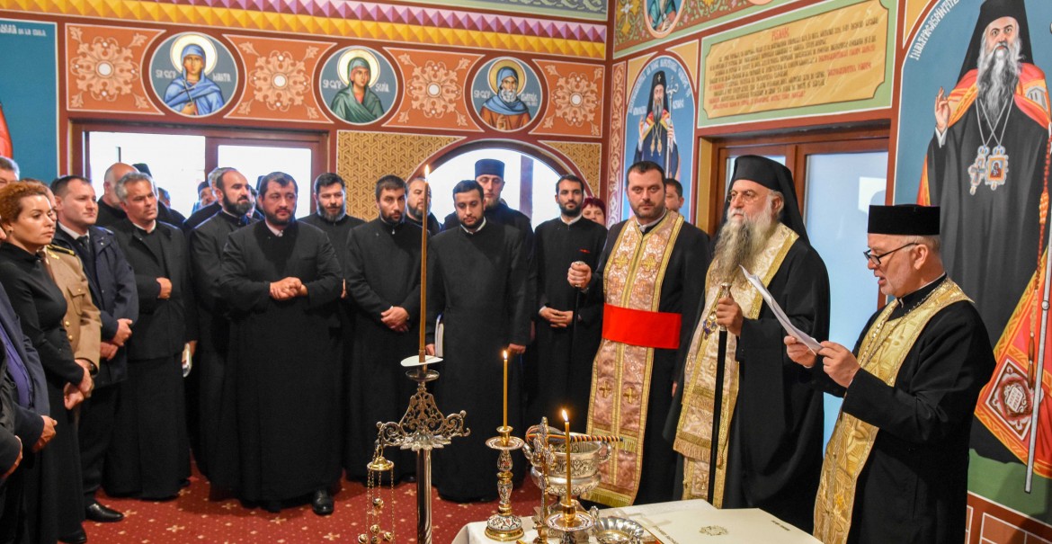 Chiriarhul Râmnicului a săvârșit, în continuare, slujba de sfințire a noului sediu al protoieriei, în prezența părinților consilieri, a preoților, a reprezentanților autorităților locale și ai instituțiilor de învățământ militar din municipiu.