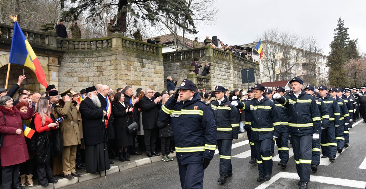 Cu acest prilej, Înaltpreasfințitul Părinte Varsanufie, Arhiepiscopul Râmnicului, a oficiat Te Deum-ul de Ziua Națională, după care au fost prezentate mesajele autorităților locale.