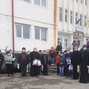 Miercuri, 16 decembrie, pe platoul din fața centrelor de îngrijire și asistență a persoanelor vârstnice Bistrița, părintele protoiereu Mihai Cârțan împreună cu preoți din Protoieria Horezu au oferit daruri celor 120 de benefiari și personalului medical.