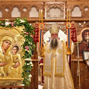 Monahi și credincioși au participat în seara zilei de 27 august spre dimineața zilei următoare la slujba Privegherii de toată noaptea în cinstea icoanei Maicii Domnului „Ierusalimitissa” de la Mănăstirea Înălțarea Sfintei Cruci din localitatea Budești. După miezul nopții, Înaltpreasfințitul Părinte Varsanufie, Arhiepiscopul Râmnicului, a săvârșit Sfânta Liturghie.