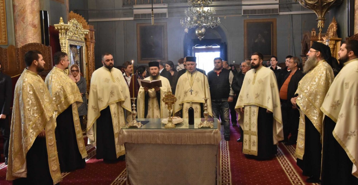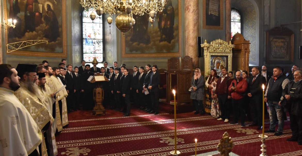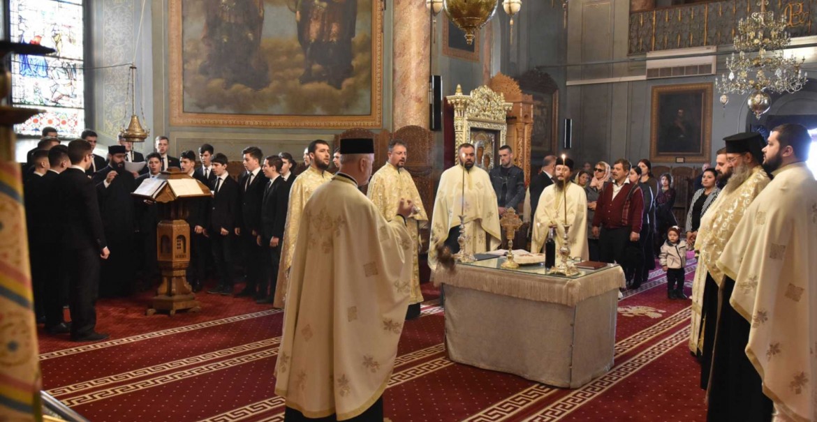 Slujba de pomenire a fost săvârșită de un sobor de preoți din Administrația eparhială, iar răspunsurile liturgice au fost date de membrii Corului Seminarului Teologic Ortodox „Sfântul Ierarh Nicolae” din Râmnicu-Vâlcea, dirijați de pr. Siluan-Dumitru Scurtu.