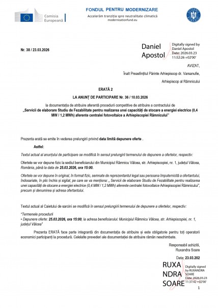 ERATĂ 2 LA ANUNȚ DE PARTICIPARE Nr. 36 / 10.03.2026