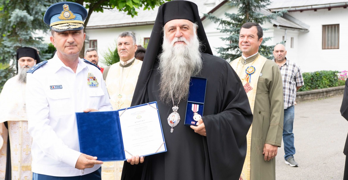 În semn de apreciere „pentru contribuția adusă la cultivarea respectului pentru simbolurile naționale”, Șeful Statului Major al Forțelor Aeriene, General-locotent Viorel Pană, a conferit Înaltpreasfințitului Părinte Varsanufie, Arhiepiscopul Râmnicului, distincția militară „Emblema de onoare” a Forțelor Aeriene.