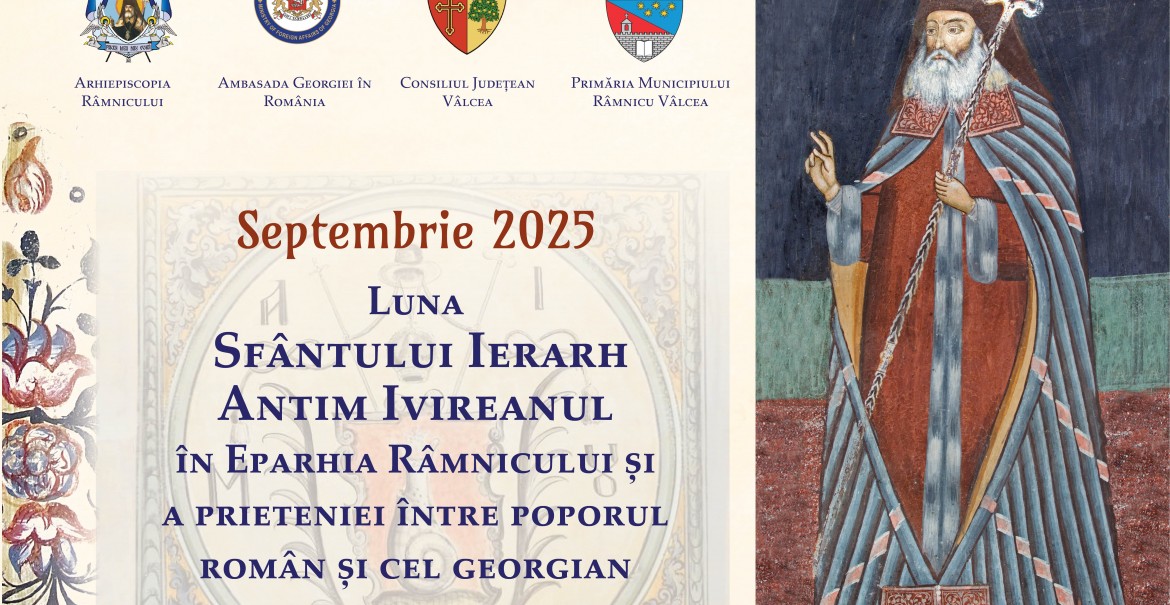 Arhiepiscopia Râmnicului, în parteneriat cu Ambasada Georgiei în România, Consiliul Județean Vâlcea și Primăria Municipiului Râmnicu Vâlcea, organizează mai multe manifestări cu prilejul Sărbătorii Sfântului Ierarh Antim Ivireanul, Ocrotitorul Spiritual al Municipiului Râmnicu Vâlcea, în perioada 1- 28 septembrie.