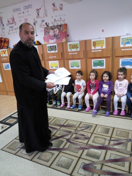 Cu binecuvântarea Înaltpreasfințitului Părinte Varsanufie, Arhiepiscopul Râmnicului, prin Sectorul Învățământ și Activități cu tineretul, în Săptămâna Patimilor, Părintele Neagoe Gabriel Vasile de la Parohia Sfântul Gheorghe-Nord a desfășurat o serie de activități catehetice la Grădinița PP Dumbrava minunată.