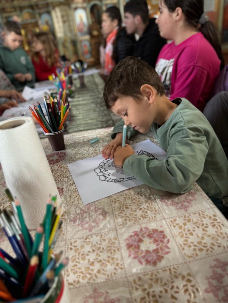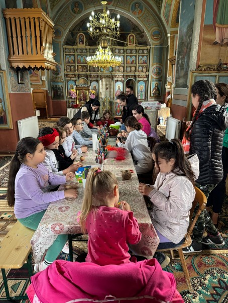 Copiilor li s-a arătat cum se vopsesc tradițional ouăle de Paște folosind foi de ceapă și sfeclă roșie.În cadrul întâlnirii, participanții la activitatea catehetică au desfășurat ateliere de desen, de pictură și de lucru manual.