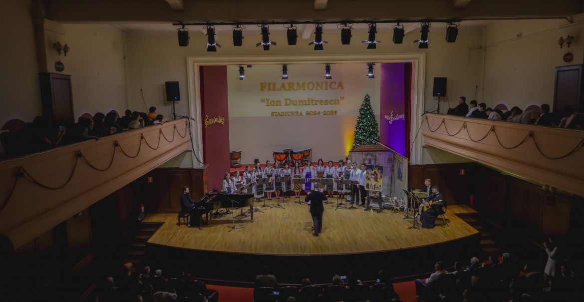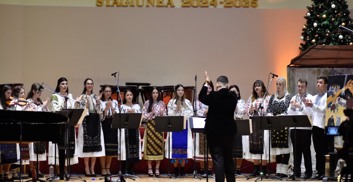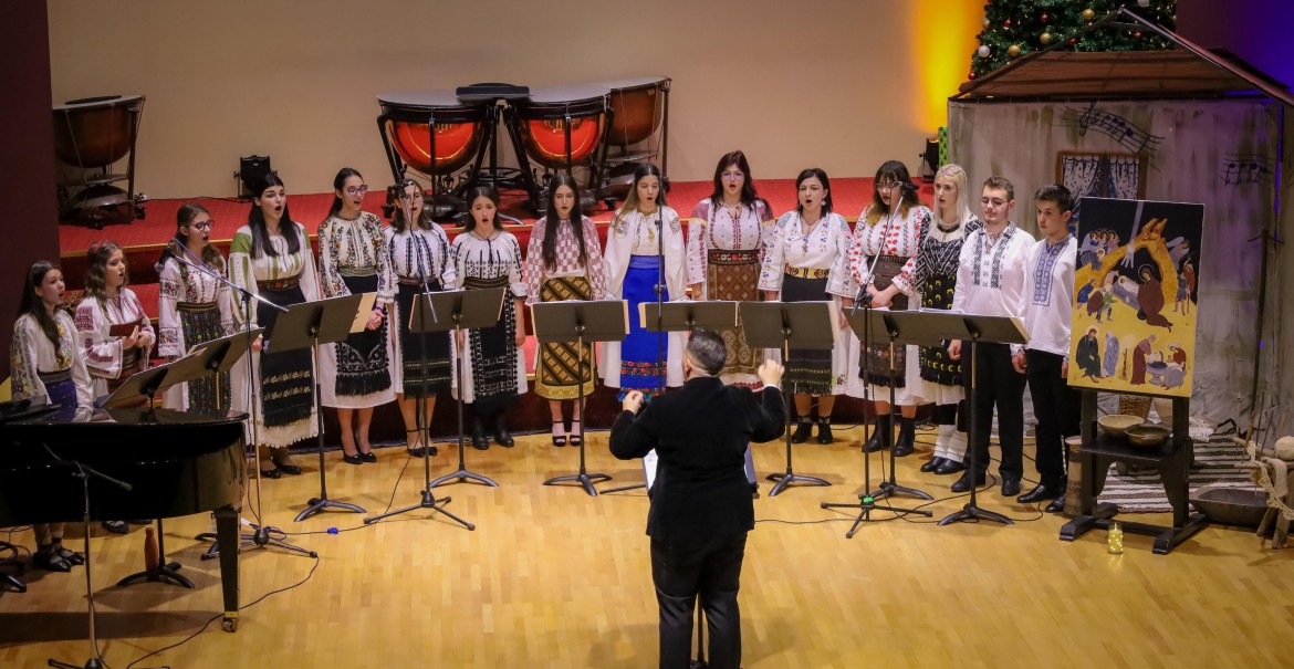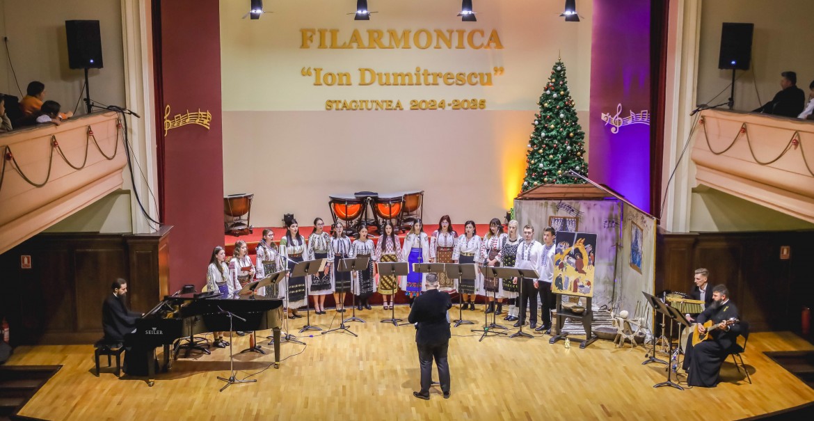 Pe scena Filarmonicii „Ion Dumitrescu”, Corul Benedictus a interpretat, miercuri, 4 decembrie, colinde de factură psaltică, coral-armonică și tradițională.