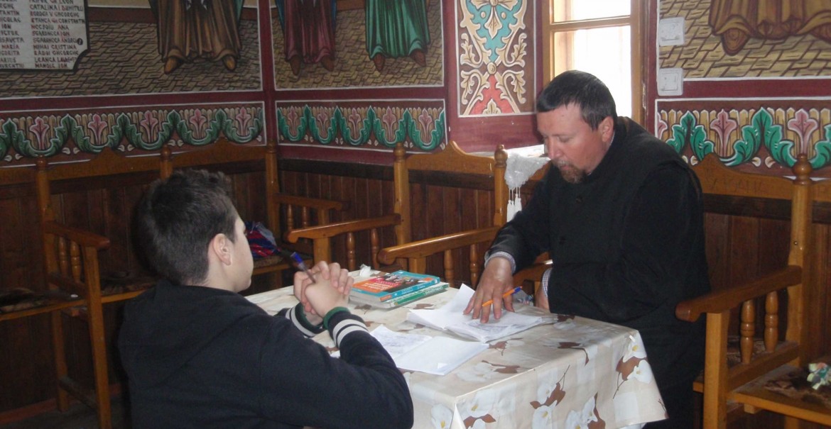O astfel de activitate se desfășoară în Parohia Cernișoara unde, nemaifiind școală cu clasele I-VIII, puținii copii ai parohiei se deplasează cu microbuzul pentru a ajunge la școală. Părintele paroh Dumitru Andronescu a găsit o modalitate de a-și ajuta copiii din parohie reînviind Școala din pridvorul Bisericii. În fiecare duminică, după Sfânta Liturghie, părintele face pregătire pentru examenul de capacitate cu cei trei copii de clasa a VIII – a din parohie. Copiii sunt foarte receptivi și mulțumesc părintelui lor pentru dragostea fiască pe care le-o poartă.