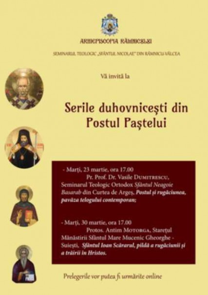 Cu binecuvântarea Înaltpreasfințitului Părinte Varsanufie, Arhiepiscopul Râmnicului, Seminarul Teologic Sfântul Nicolae din Râmnicu-Vâlcea organizează întâlniri duhovnicești  în perioada Postului Mare.
