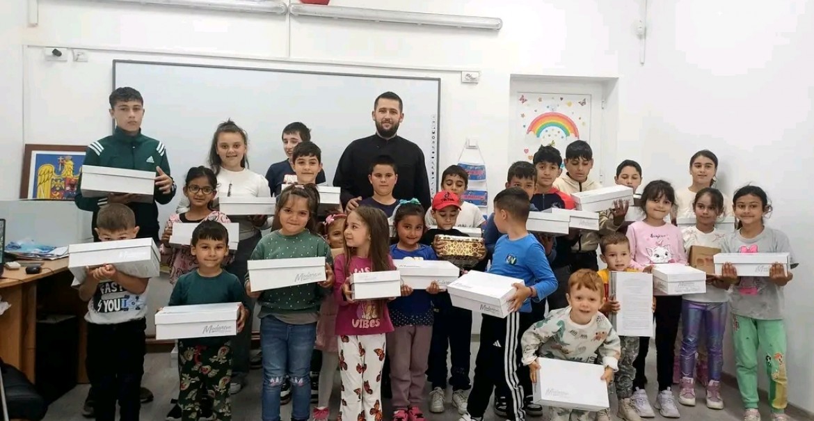 Cu binecuvântarea Înaltpreasfințitului Părinte Varsanufie, Arhiepiscopul Râmnicului, părintele Nicolae Dorin Buda, inspector coordonator al Departamentului de misiune pentru rromi, în parteneriat cu Asociația „Popa Soare” din București, a organizat în data de 8 mai, o activitate filantropică prin care au fost dăruite elevilor rromi de la Gradinița și Școala Primară Sînbotin articole de încălțăminte noi.