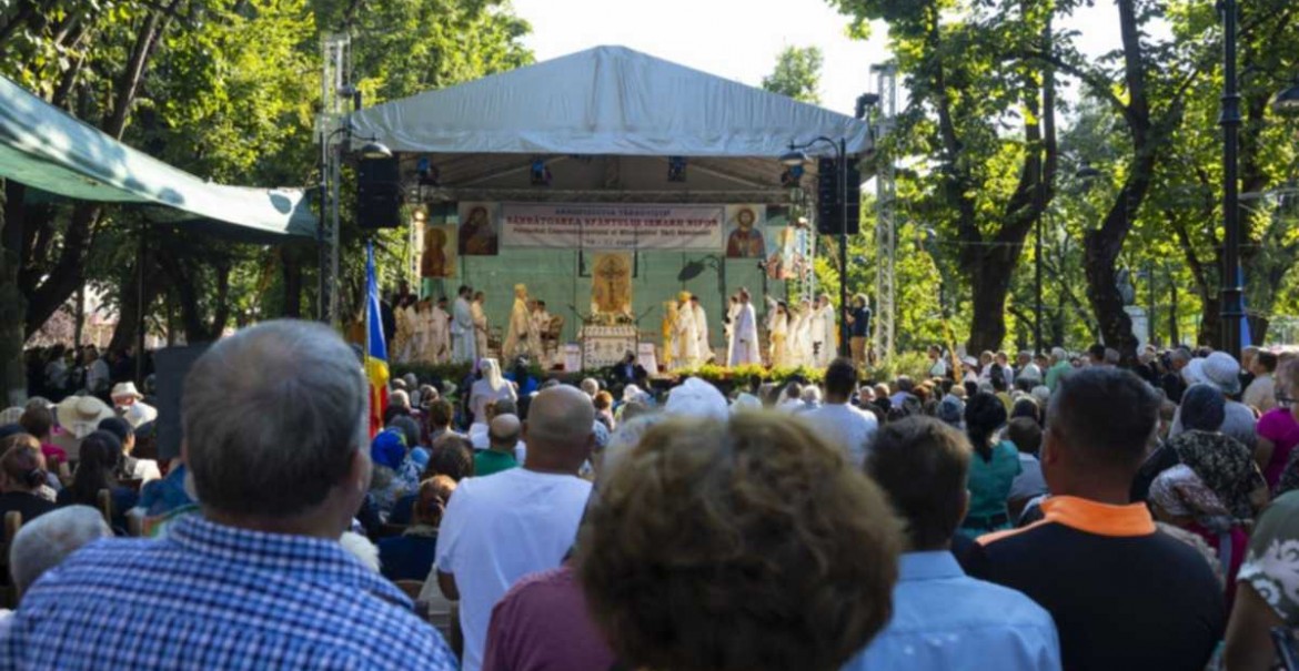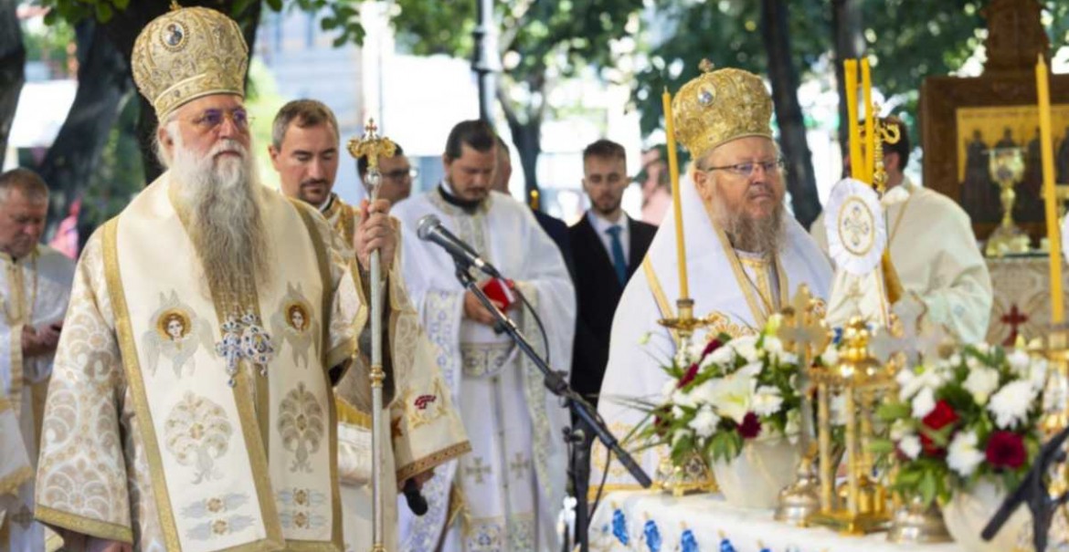 Slujba Sfintei Liturghii a fost săvârșită pe podiumul special amenajat în apropierea Catedralei eparhiale de către Înaltpreasfințitul Părinte Mitropolit Nifon, Arhiepiscopul Târgoviștei, împreună cu Înaltpreasfințitul Părinte Naum, Mitropolit de Ruse – Biserica Ortodoxă Bulgară, Înaltpreasfințitul Părinte Vasilios, Mitropolit de Constantia şi Famagusta – Biserica Ortodoxă a Ciprului, Înaltpreasfințitul Părinte Varsanufie, Arhiepiscopul Râmnicului și Preasfințitul Părinte Paisie Sinaitul, Episcop vicar patriarhal.
