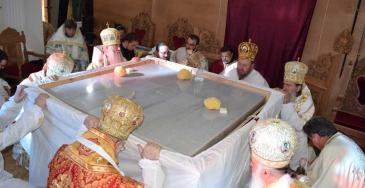Slujba de sfințire a fost săvârșită, în prezența Patriarhului Neofit al Bugariei, de către un sobor de ierarhi din care au făcut parte: Înaltpreasfințitul Părinte Neofit, Mitropolit de Ruse, Înaltpreasfințitul Părinte Longhin, Mitropolitul de Saratov și Volsk, din Biserica Ortodoxă Rusă, Înaltpreasfințitul Părinte Teodosie, Arhiepiscopul Tomisului, și Înaltpreasfințitul Părinte Varsanufie, Arhiepiscopul Râmnicului, din Biserica Ortodoxă Română, Preasfințitul Părinte Tihon, Preasfințitul Părinte Sionie, Starețul Mănăstirii Troianu, Preasfințitul Părinte Gherasim, Secretarul Sfântului Sinod al Bisericii Ortodoxe Bulgare.