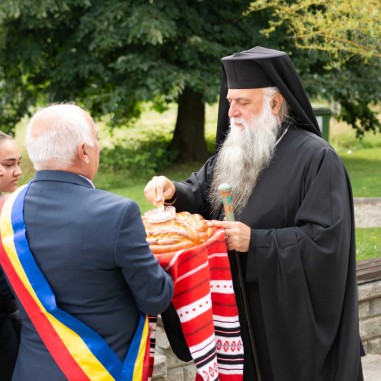 Cu acest prilej, Sfânta Liturghie a fost săvârșită de Înaltpreasfințitul Părinte Varsanufie, Arhiepiscopul Râmnicului, înconjurat de un sobor de preoți și diaconi.