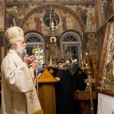 Priveghere și Liturghie arhierească pentru cinstirea Icoanei Maicii Domnului Trihirussa de la Mănăstirea Turnu