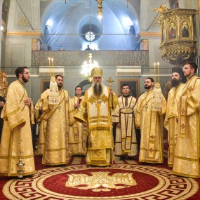 Duminică, 19 februarie, Înaltpreasfințitul Părinte Varsanufie a săvârșit Sfânta Liturghie la Catedrala Arhiepiscopală Sfântul Nicolae din Râmnicu-Vâlcea, înconjurat de un sobor de preoți și diaconi.