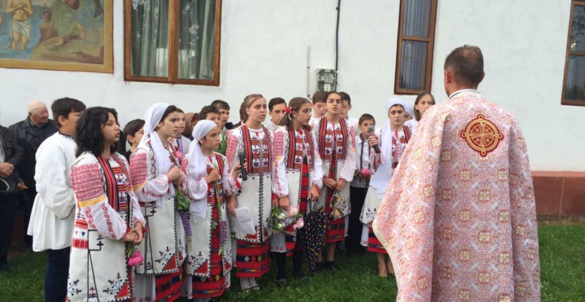 După slujba de sfințire, elevii de la Școala Slătioara au oferit un recital de cântări patriotice prin care au evocat faptele de eroism al celor care s-au jertfit pentru păstrarea libertății și demnității neamului.