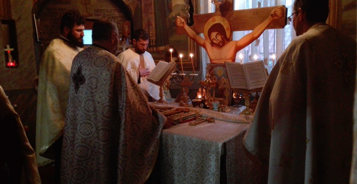 A doua zi, slujba Sfintei Liturghii a fost săvârșită de un ales sobor de preoți sub protia Preacuviosului Părinte Protosinghel Misail, Starețul Mănăstirii Turnu.