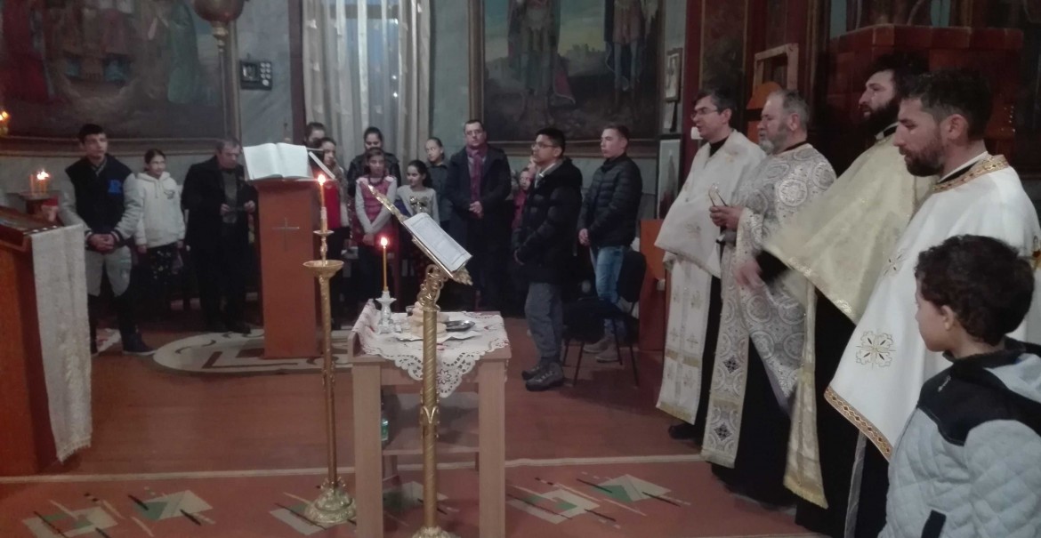 Sărbătoarea comunității a început cu Slujba Vecerniei cu Litie, săvârșită în sobor, după care părintele paroh Emanoil Găman a susținut cateheza „Cinstirea lanțului Sfântului Apostol Petru”. La cateheză au participat elevii Școlii Gimnaziale Tomșani coordonați de profesorul de religie Liviu-Bogdan Tudor și enoriașii parohiei.