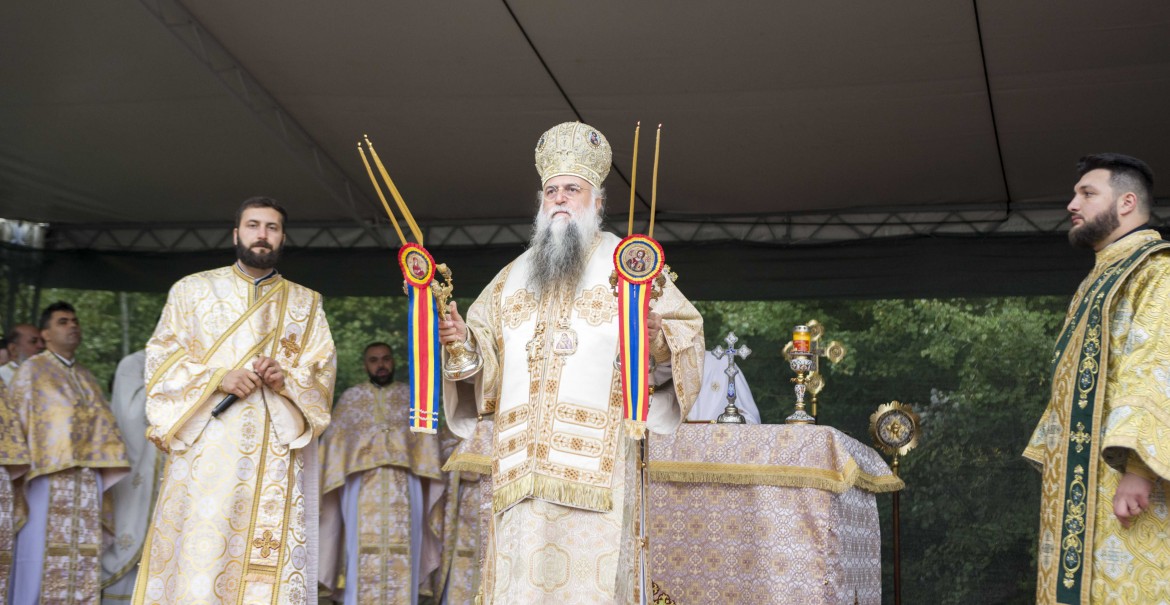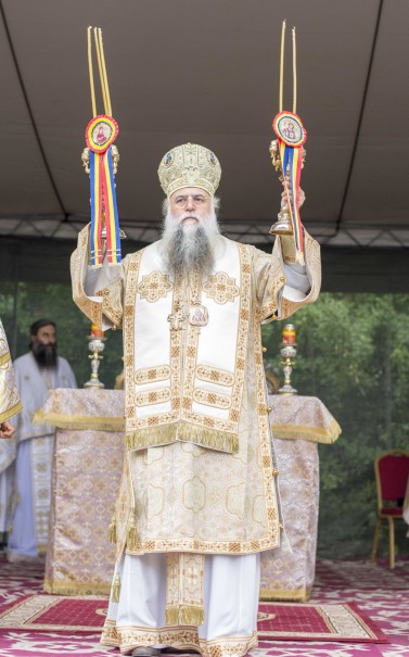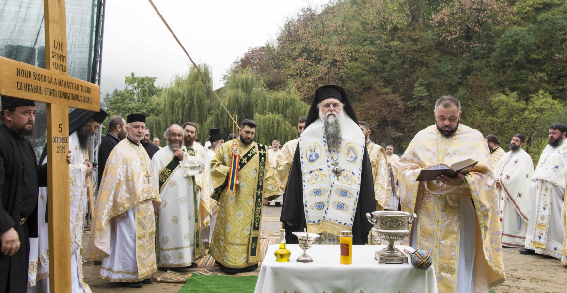După binecuvântarea raclei, Înaltpreasfinția Sa a săvârșit slujba punerii pietrei de temelie pentru noua biserică a Mănăstirii Turnu cu hramul Sfinții Cuvioși Daniil și Misail, apoi, înconjurat de un numeros sobor de preoți și diaconi de la mănăstirile și parohiile din cuprinsul Protoieriei Călimănești, a săvârșit Sfânta și Dumnezeiasca Liturghie pe un podium amenajat în apropierea locașului de cult al Mănăstirii Turnu. Răspunsurile liturgice au fost date de membri ai Grupului psaltic Nectarie Protopsaltul, condus de lect. univ. dr. Sabin Preda, de la Facultatea de Teologie Ortodoxă din București.