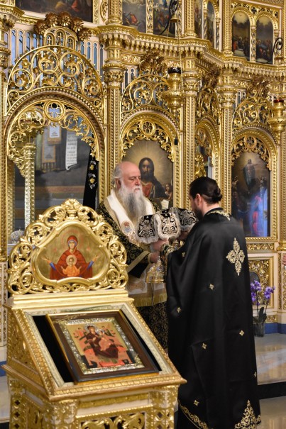 Înaltpreasfinția Sa a săvârșit Sfânta Liturghie a Darurilor înainte sfințite și i-a încredințat pe cei prezenți că „pentru Sfântul Ierarh Calinic de la Cernica, contemplarea lui Dumnezeu i-a devenit izvor de viaţă şi nemurire, întrucât nu există altă cale pe care credinciosul să se desăvârşească decât cea care izvorăște din puterea MântuitoruluiHristos.