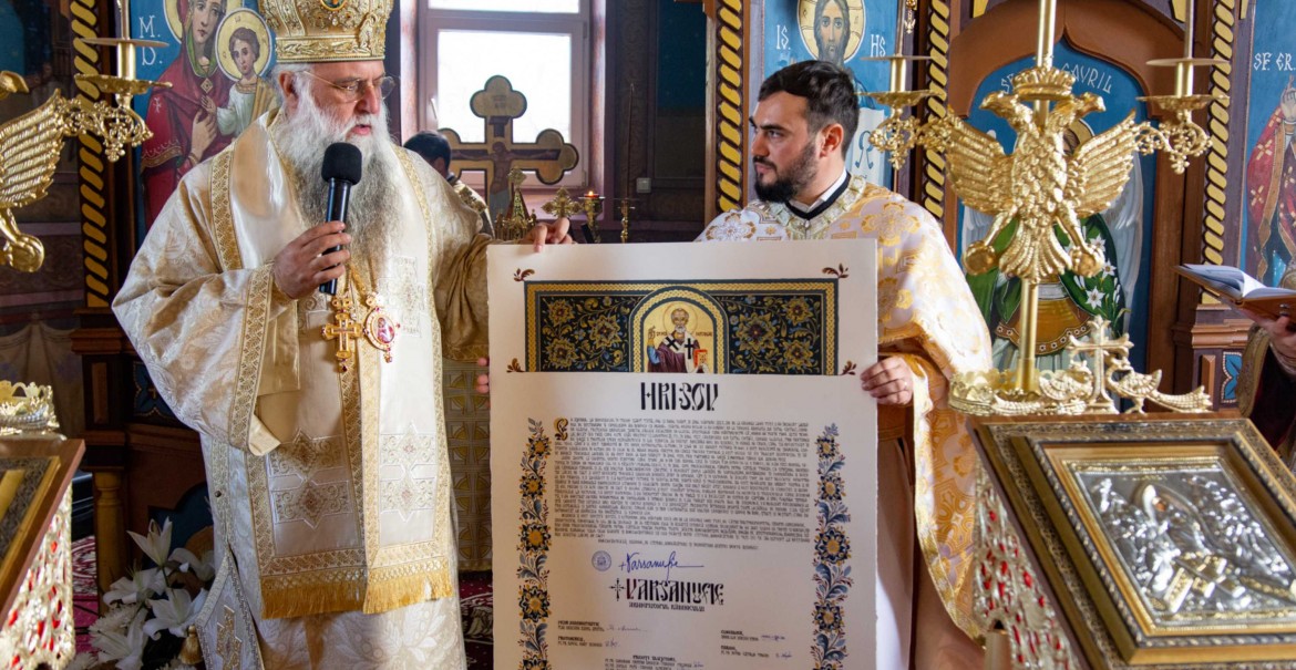 Înaltpreasfinția Sa a vorbit la finalul slujbei și despre frumusețea locașului de cult, care, prin implicarea preotului paroh, și-a recăpătat frumusețea conferită de ctitori. Chiriarhul Râmnicului l-a hirotesit iconom stavrofor pe preotul Cătălin Petre Trifan și i-a felicitat pe cei care au contribuit la înfrumusețearea bisericii.