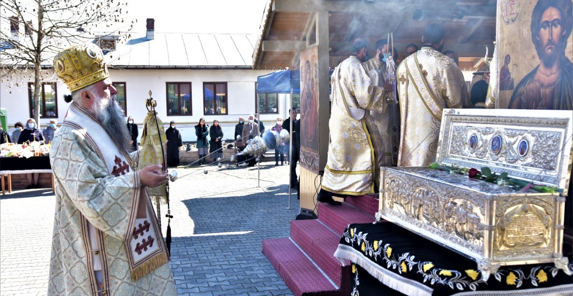 Cu acest prilej, Chiriarhul Râmnicului a săvârșit Sfânta Liturghie la altarul de vară al Catedralei Arhiepiscopale pe care Sfântul Ierarh Calinic a ctitorit-o între anii 1852-1867, după ce catedrala veche fusese mistuită de incendiul ce a cuprins municipiul Râmnicu-Vâlcea în primăvara anului 1847.