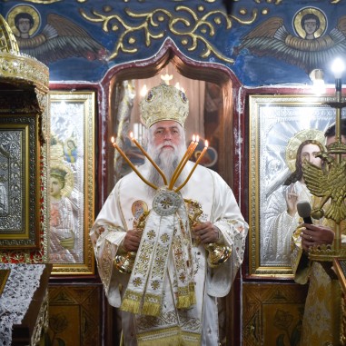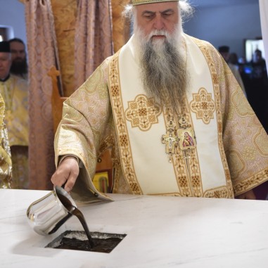 După Sfânta Liturghie, în faţa bisericii, Înaltpreasfinţitul Părinte Varsanufie, alături de soborul de slujitori şi în prezenţa a sute de credincioşi râmniceni, a săvârşit slujba de sfinţire a Aghesmei mici, prevăzută în rânduiala tipiconală a acestei sărbători.
