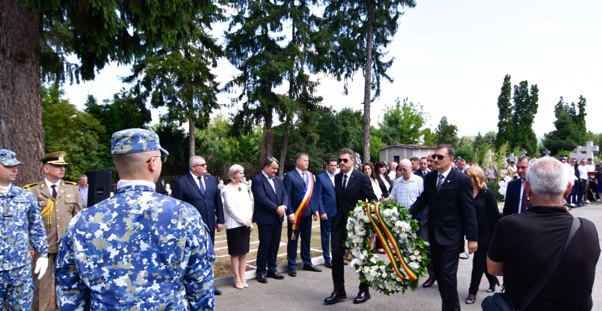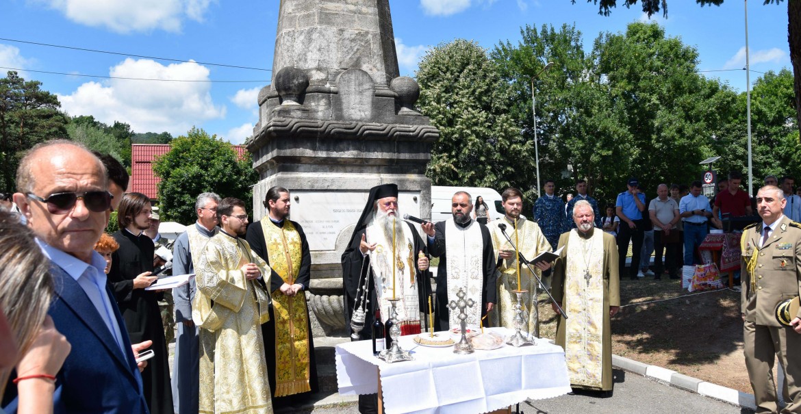 Înaltpreasfințitul Părinte Varsanufie, Arhiepiscopul Râmnicului, a săvârșit slujba de pomenire a eroilor neamului românesc, moment duhovnicesc la care au participat reprezentanți ai instituțiilor de stat, centrale și locale, ai asociațiilor militare locale, militari în activitate, în rezervă și în retragere, veterani de război. După rostirea alocuțiunilor, au fost depuse coroane de flori.