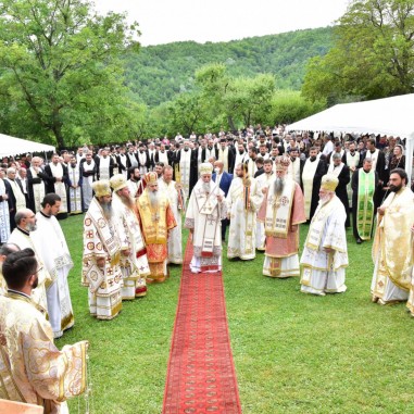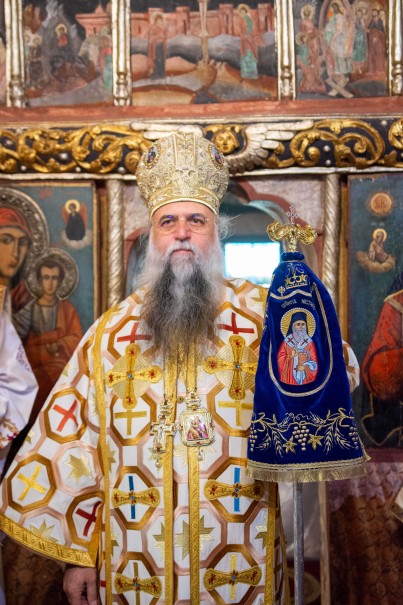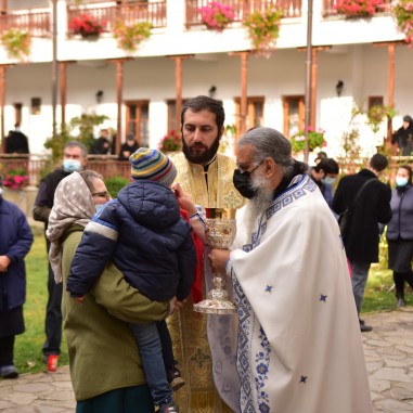 Sfânta Liturghie a fost săvârșită de Înaltpreasfințitul Părinte Varsanufie, Arhiepiscopul Râmnicului, înconjurat de un sobor de preoți și diaconi. În cuvântul de învățătură, Chiriarhul Râmnicului a reliefat învățăturile duhovnicești care reies din viața Sfântului Ierarh Nectarie de la Eghina.