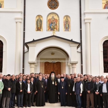 La finalul slujbei, Părintele Arhiepiscop Varsanufie a mulțumit celor prezenți pentru împreuna rugăciune, în mod special membrilor Grupului psaltic Nectarie Protopsaltul, condus de lect. univ. dr. Sabin Preda, de la Facultatea de Teologie Ortodoxă din București.