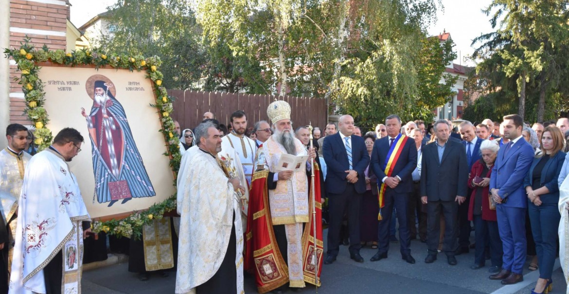 Aici, Înaltpreasfințitul Părinte Varsanufie, Arhiepiscopul Râmnicului, a sfințit Icoana Sfântului Ierarh Martir Antim Ivireanul și a adresat un cuvânt de binecuvântare în care a arătat activitatea culturală și duhovnicească a sfântului, amintind de cele 9 cărți tipărite la Râmnic dar și de lucrările de restaurare a mănăstirilor Govora, Surpatele, Cozia și a schitului Fedeloșoiu.