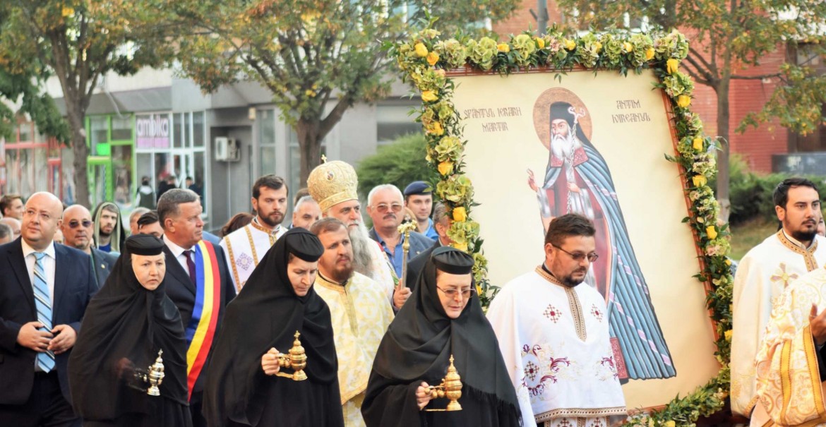 În ajunul sărbătorii Sfântului Ierarh Martir Antim Ivireanul, cu binecuvântarea și în prezența Înaltpreasfințitului Părinte Varsanufie, Arhiepiscopul Râmnicului, în municipiul Râmnicu-Vâlcea a fost organizată procesiunea cu icoana ocrotitorului spiritual, la care au participat reprezentanții autorităților centrale, județene și locale, preoți, monahi, monahii și credincioși.