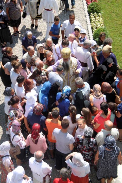 După slujba de sfințire, Părintele Arhiepiscop a săvârșit Sfânta Liturghie la altarul de vară din curtea mănăstirii.