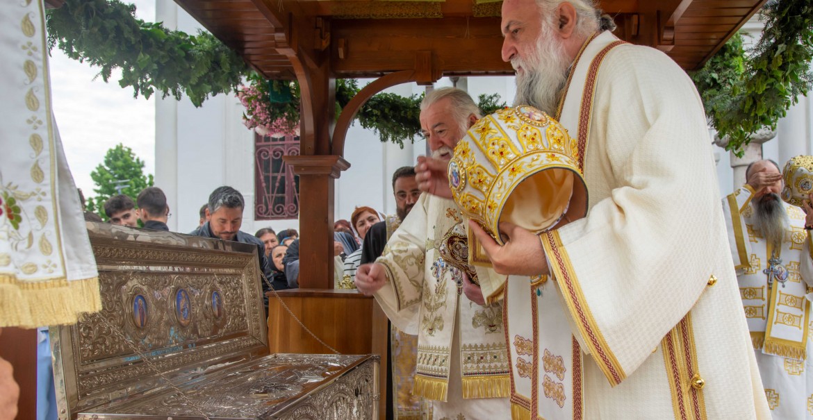 Credincioşii prezenţi au putut aduce cinstire sfintelor moaşte ale Sfântului Ierarh Calinic de la Cernica, Episcopul Râmnicului, care au fost scoase în procesiune (în această dimineaţă) din Catedrala Arhiepiscopală şi aşezate spre închinare în baldachinul special amenajat din apropierea lăcaşului de cult.
