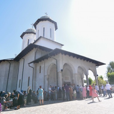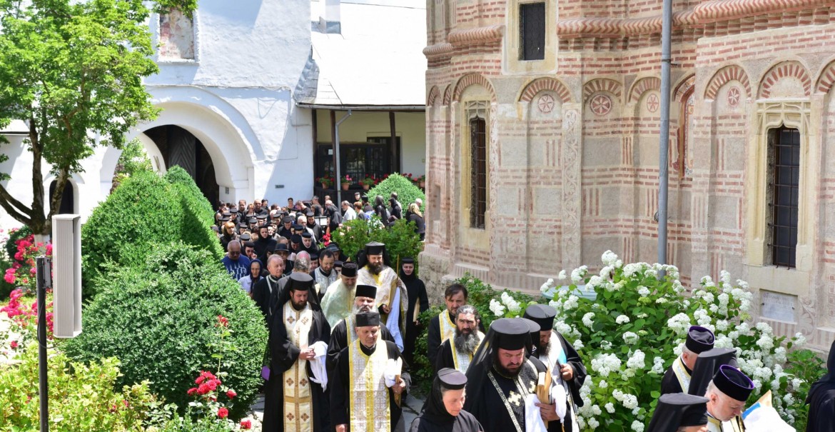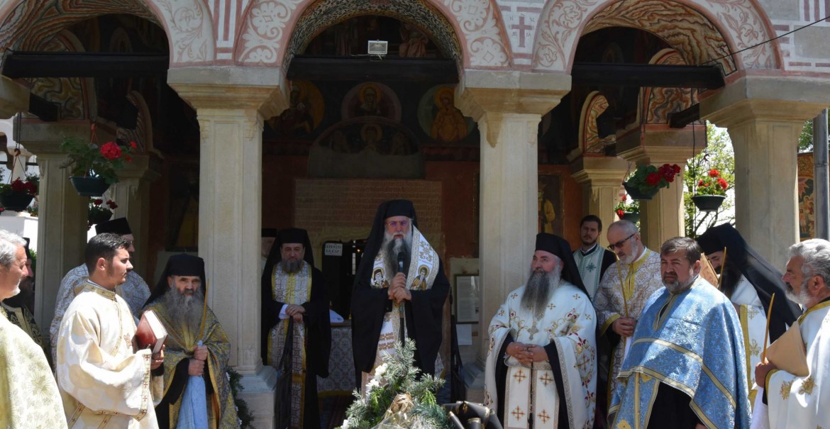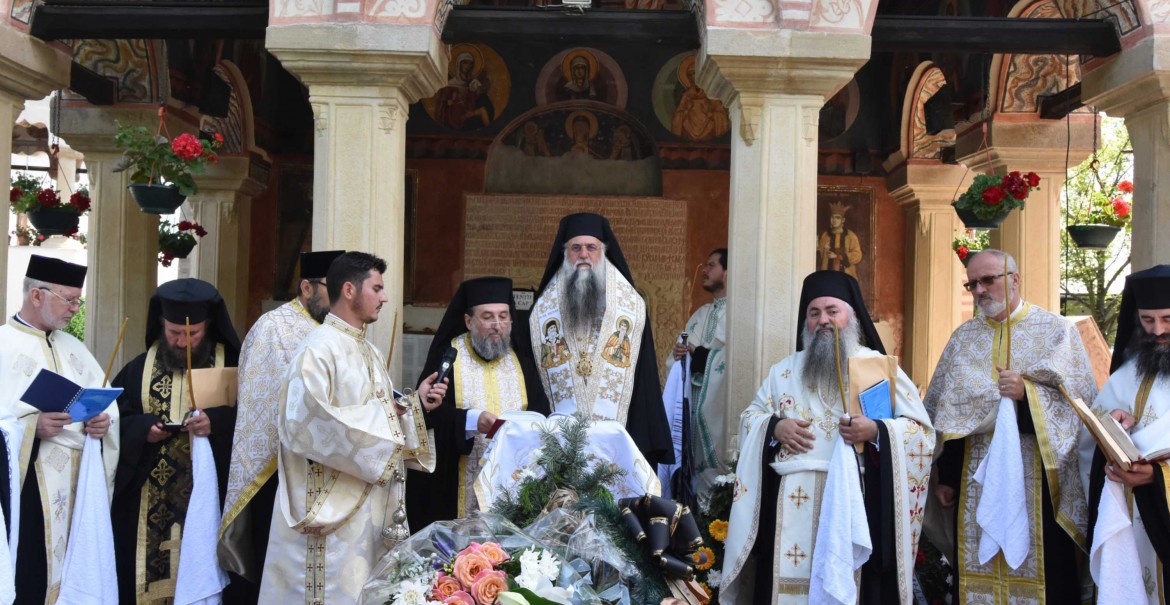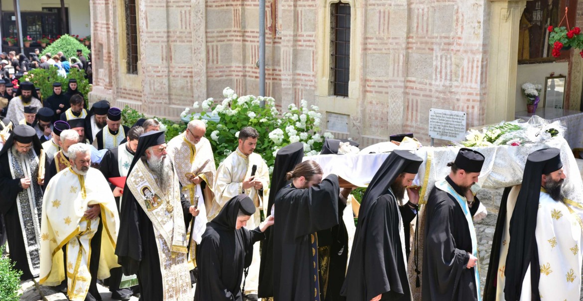 Slujba religioasă a fost săvârșită în fața bisericii voievodale Nașterea Maicii Domnului, în prezența obștii Mănăstirii Dintr-un Lemn, a preoților, monahilor și monahiilor, dar și a credincioșilor cărora  le-a fost părinte duhovnicesc și iscusit povățuitor.