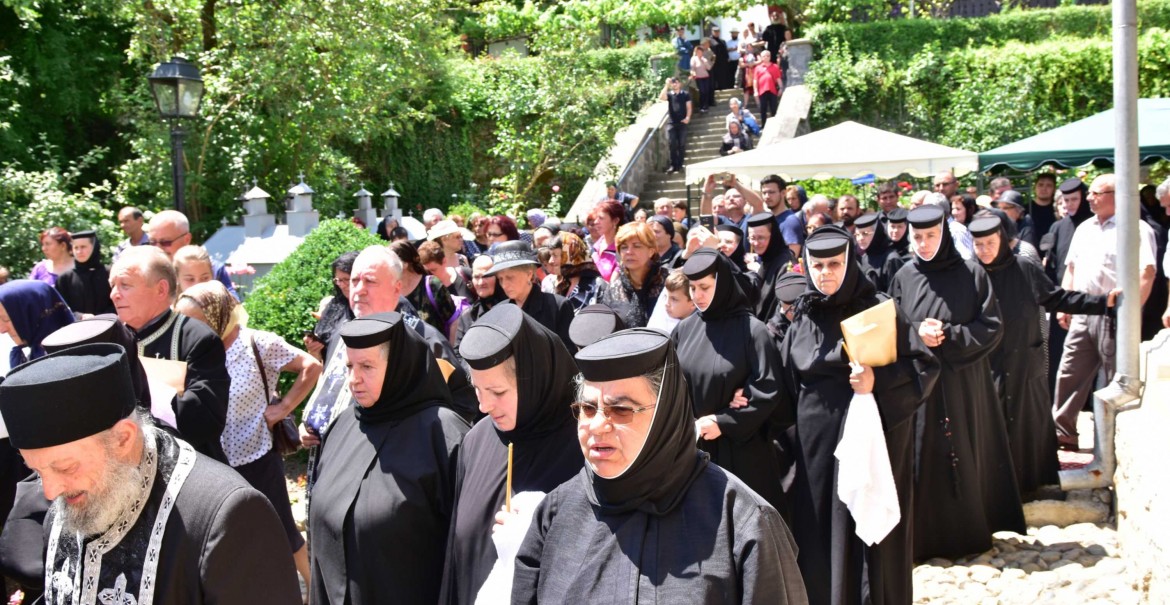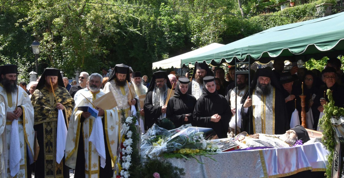 Sicriul cu trupul celui adormit a fost purtat de monahi în sunet de clopot în jurul bisericii, după care a fost așezat în mormântul pregătit în incinta mănăstirii, întru nădejdea învierii și a vieții de veci.