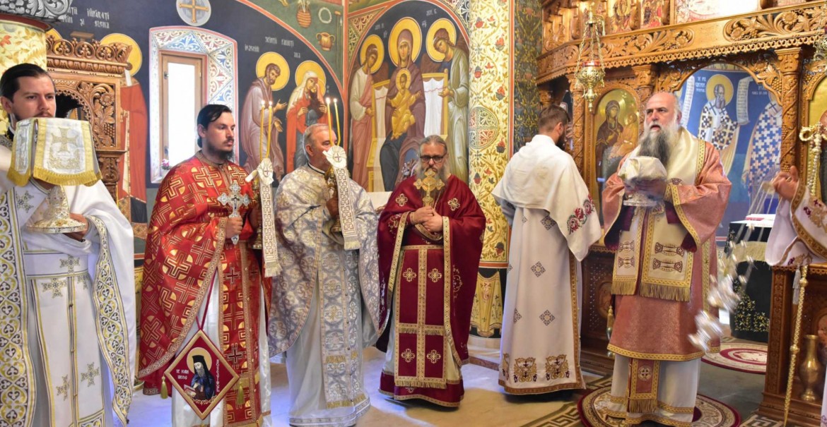 Monahii și pelerini au participat joi, 29 august, la Sfânta Liturghie săvârșită de Chiriarhul Râmnicului la paraclisul cu hramurile Sfântul Prooroc Ilie Tesviteanul și Sfântul Cuvios Gherasim de la Iordan al Mănăstirii Arnota.