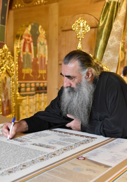 Înaltpreasfințitul Părinte Varsanufie, Arhiepiscopul Râmnicului, a oferit maicii starețe Pelaghia Toader hrisovul de sfințire iar, la final a acordat diplomele de ctitor și diplome de vrednicie ostenitorilor și binefăcătorilor sfântului locaș.