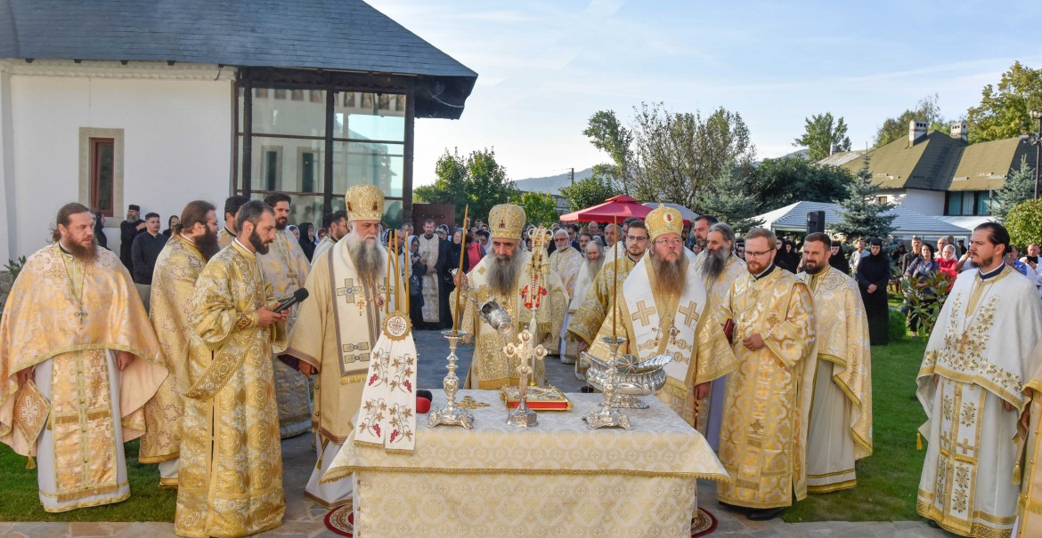 Sfânta Liturghie a fost săvârșită pe scenă în apropierea ctitoriei Sfântului Voievod Neagoe Basarab din secolul al XVI-lea, unde va fi așezat și altarul de vară al mănăstirii.